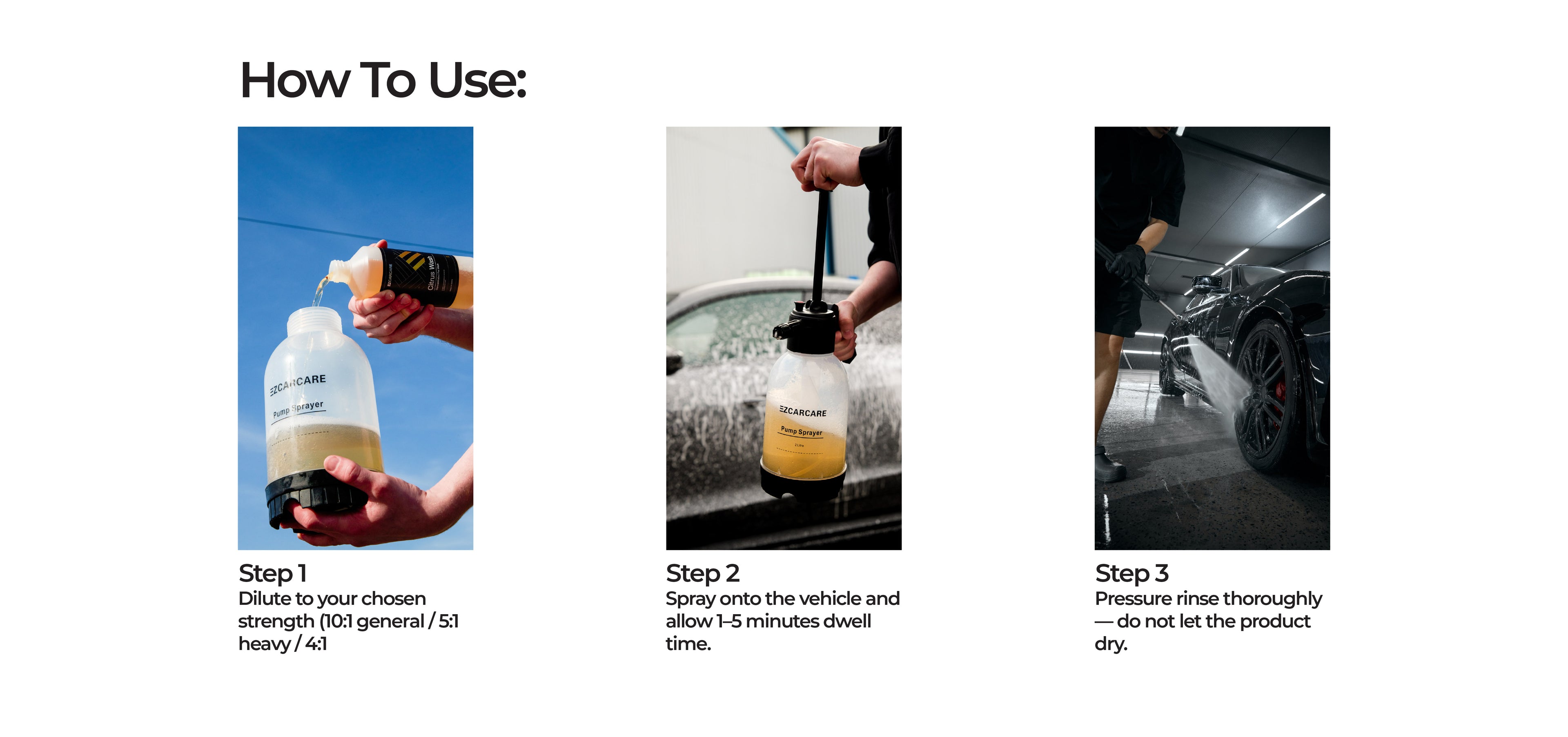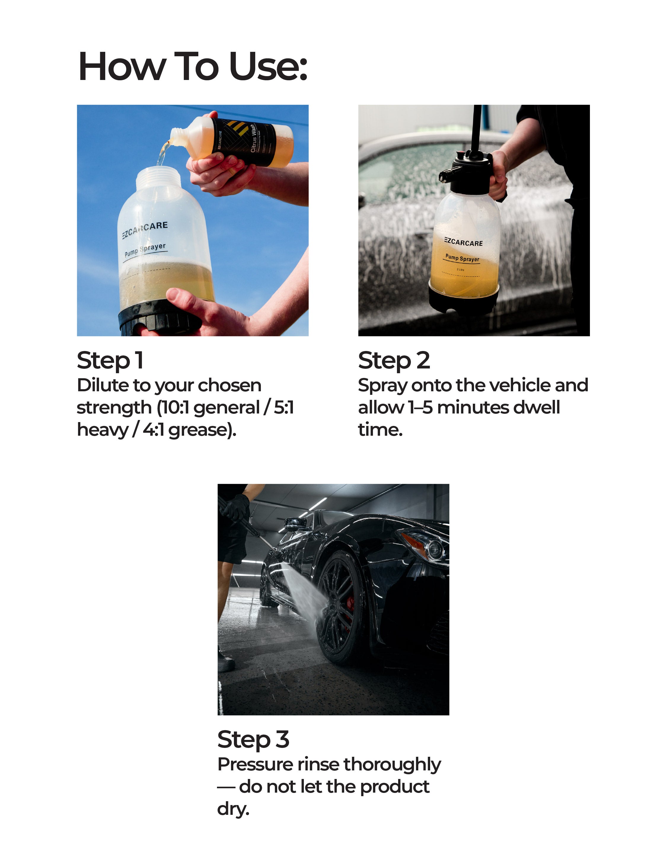 Citrus Wash is a high-powered pre-wash cleaner designed to break down dirt, salt, grease, road film, and grime before you make contact with the paint. It lifts contamination safely, reducing the risk of swirl marks during the wash process.