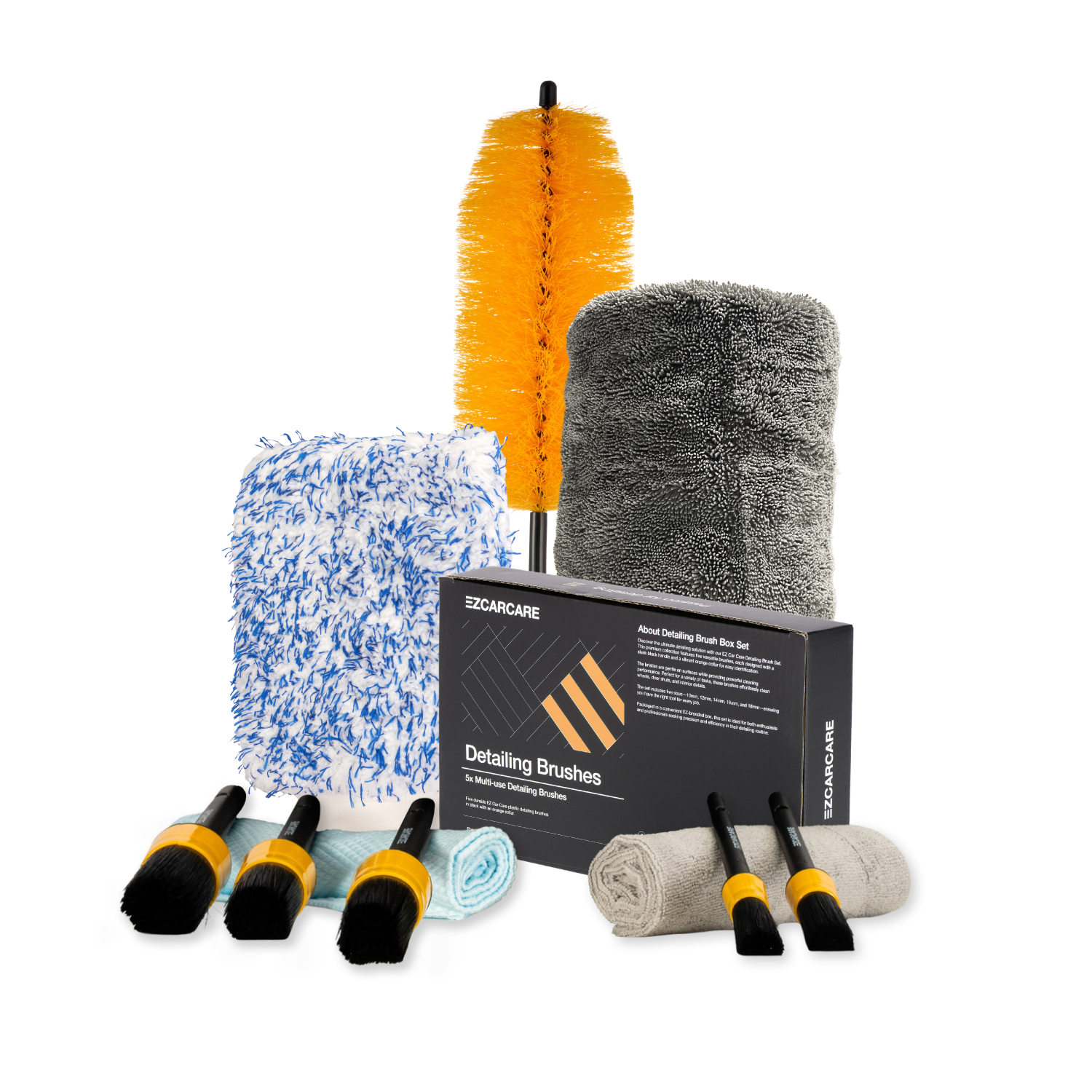 This is your go-to detailing toolkit — built to handle every surface, every corner, every job. Whether you’re cleaning wheels, paint, glass, or interiors, this kit gives you the right tool for the right task, without cutting corners.