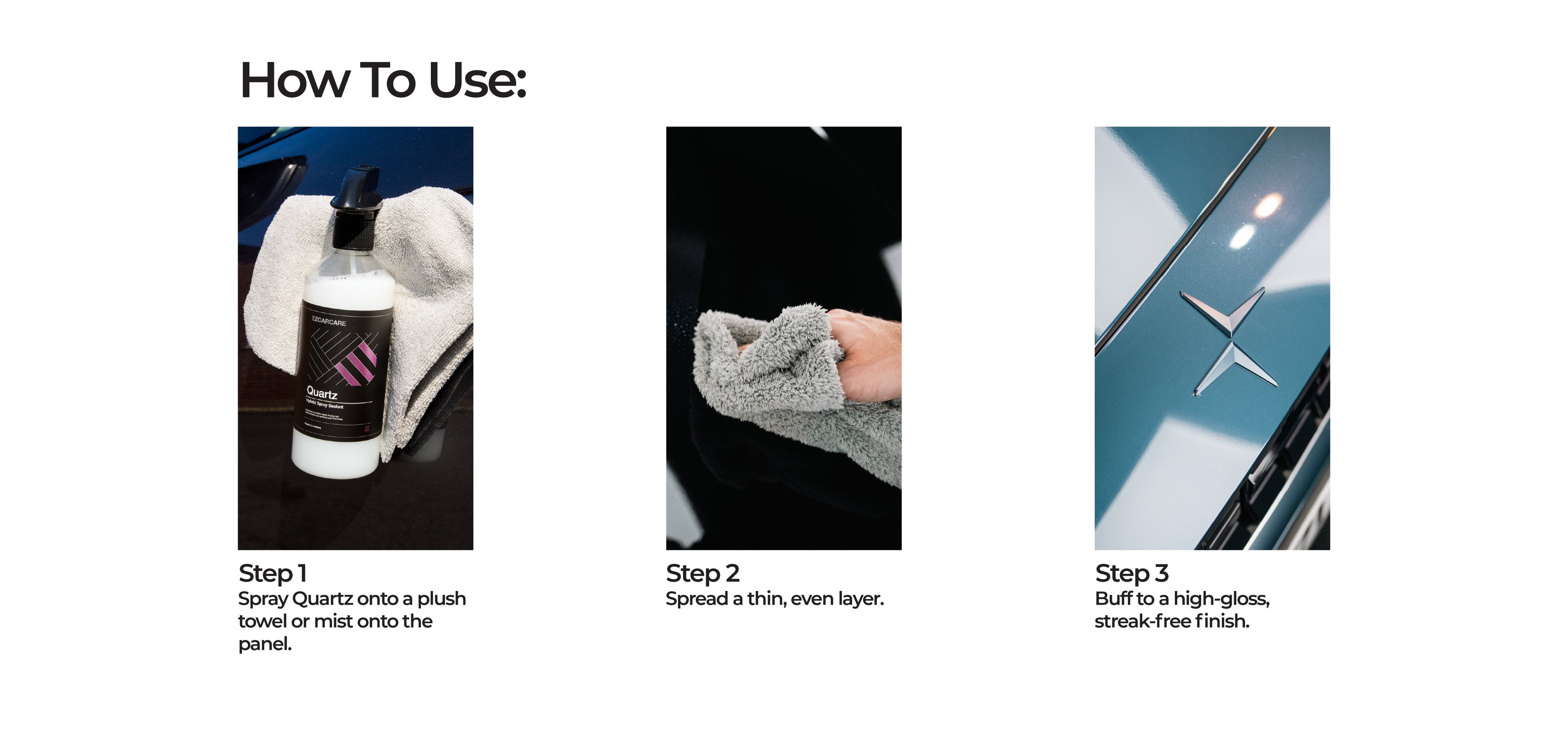 Quartz provides 6–8 months of durable protection when applied to a properly prepped surface. Layering 2–3 coats can extend longevity even further and boost gloss and water behaviour.
